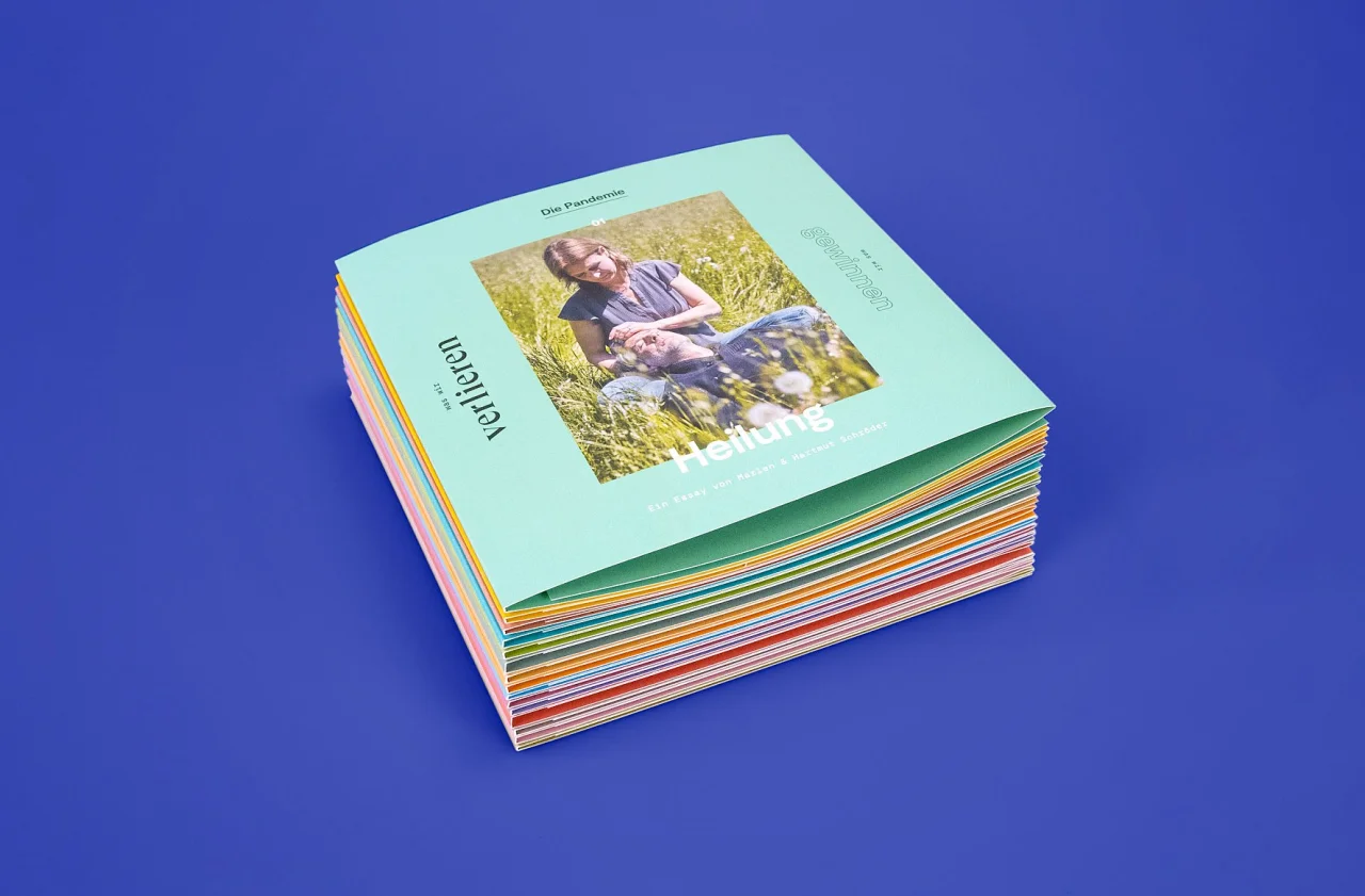 »Mit der fünfzehnteiligen Schriftenreihe „Die Pandemie – was wir gewinnen, was wir verlieren” publizierte der ReMedium Verlag ein bemerkenswertes Zeitzeugnis, das vielschichtige Positionen aus unterschiedlichen Teilbereichen der Kultur vereint. Und auch die formale Gestaltung trägt dem hohen Anspruch Rechnung: Lekkerwerken zeichnete hierfür verantwortlich und durfte sich kürzlich über eine Auszeichnung beim Red Dot Award Brands & Communication Design sowie über ein Diplom bei der 52. Berliner Type freuen.«